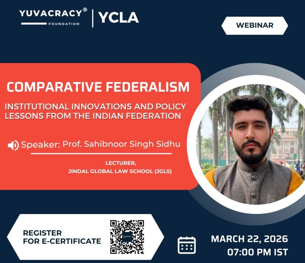 On March 22, 2026, Sahibnoor Singh Sidhu, consultant with RFK Legal, delivered a lecture on Indian Federalism through the lens of comparative constitutional law. He discussed the precursors to Indian constitutional federalism, the making of the Constitution and its subsequent working. The lecture also stressed the limits of comparativism, given the difference in the socio-political circumstances of India as compared to the US, Switzerland, or Canada.